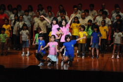 元気な歌声や躍動的なダンスで集まった聴衆を楽しませました。