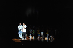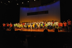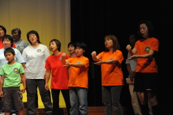 最初にあらすじを映像とナレーションでたどり、後半の3曲を合唱しました。