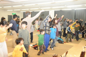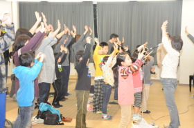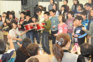会場の小さい子どもたちもたくさん前に出てきて、一緒に楽器を演奏してくれました。