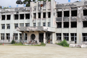 校舎は、流されてきた車などの火災により、2日間燃え続けたそうで、建物の半分は真っ黒に焼けていました。