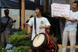 まずは、鳴瀬第二中の生徒による「松童太鼓」です。復興を担う若いエネルギーが感じられました。