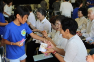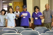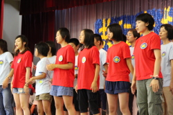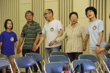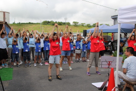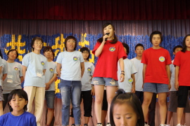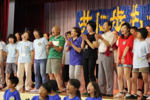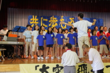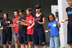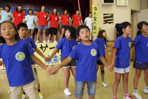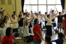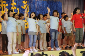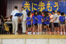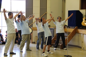 「♪愛は勝つ」を太鼓のリズムにあわせて、みんなで歌いました。