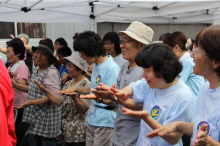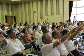 来年の『全国教育のうたごえ祭典in富山』に向けて、「大空へ飛べ」をアピールしてきました。