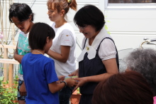 コンサート終了後、メッセージカードなどのお土産を渡しながら、積極的に地元のみなさんに声をかけました。