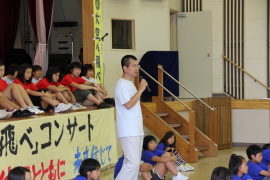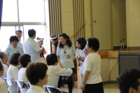 7月28日(土)のチャリティーコンサートで集まった義援金などを直接、被災地の小学校へ手渡しました。