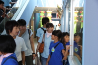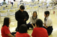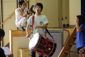 ステージ発表後は、鳴瀬第二中の松童太鼓の生徒さんと交流もしました。