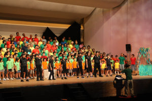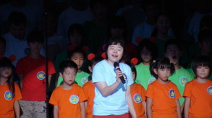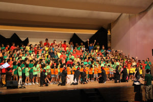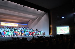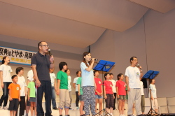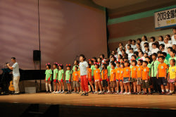 審査中の時間を利用して、2日目の「大音楽会」で歌う「♪僕たちの花を咲かせよう」の歌唱指導をしました。
