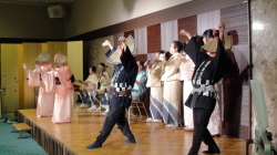 まずは、富山の民謡「越中おわら節」をみんなで輪になって踊りました。