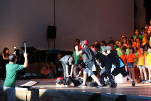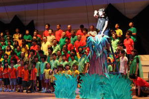 ホタル役の子どもたちの熱演を支える大合唱団は、