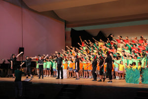 フィナーレでは、今大会のために制作した祭典公式イメージ・ソング「♪僕たちの花を咲かせよう」を高らかに歌い上げ、