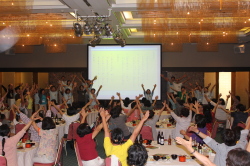 夜は、富山湾が目の前に広がる雨晴温泉『磯はなび』で、「大交流会」を行いました。