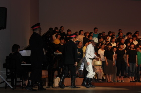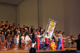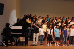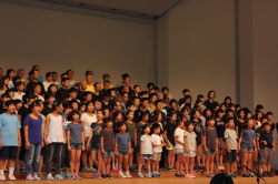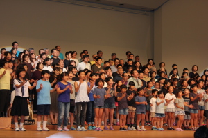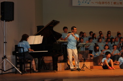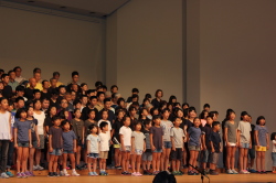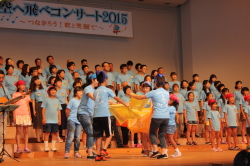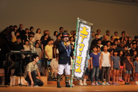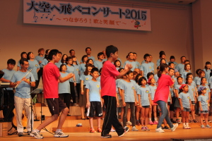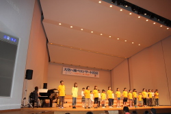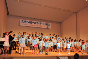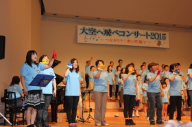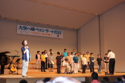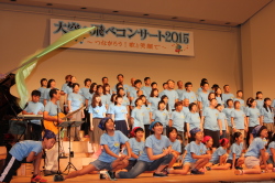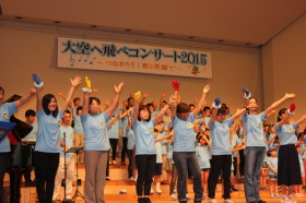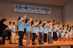 ♪ | すばらしいステージでした。合唱が一つになり会場に熱気が伝わってきました。、もっともっとたくさんのメンバーが増えるといいですね。平和な世の中にするための「大空へ飛べ」のメンバーの活躍を期待しています。ものの豊かさではなく、心の豊かさを身につける子どもたちへのメッセージを送って下さい。ありがとうございました。 |