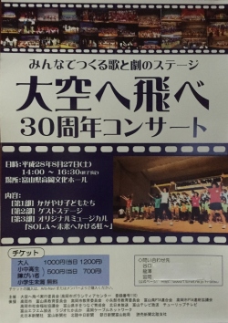 ♪ | 素敵なコンサートをありがとうございました。小さかった頃の皆さんがそれぞれに大きく成長した姿を拝見できて、とても嬉しく感動しました。今日のステージで沢山のメッセージをいただきました。これを胸に雪の降る頃、北海道へ引っ越します。大空の皆さん、数えきれない思い出をありがとうございました。 |