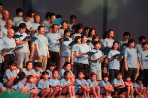 ♪ | 娘が「大空へ飛べ」に参加させていただくようになって1年半。今回が2度目のステージです。昨年よりさらに楽しそうに自信を持ってステージに立って歌ったり踊ったりしている姿を見て、とても嬉しく感動しました。第1部の「命かがやけ」が特にすばらしく、皆さんの歌声に感動しました。素晴らしいステージをありがとうございました。 |