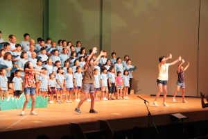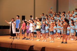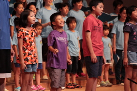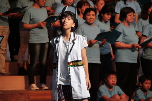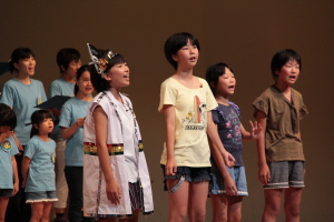♪ | パワフルな歌声、ダンスに元気がもらえました。のばな和太鼓の「ソーラン節」の演奏の時、横笛のメロディが少々音量不足でちょっと残念でしたが、力強い演奏に感動しました。「大空へ飛べ」の活動のメンバーの中から素晴らしいミュージカル女優さんが誕生されすごいですね。一人ひとりの子どもたち、周りの大人たち、とてもすてきでした。これからも無理をせず、楽しいステージを! |