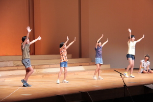 ♪ | 3歳から81歳までの幅広い年齢での活動は素晴らしいですね。これだけの活動を30年も続けているグループって他にもあるでしょうか。あったら知りたいです。ダンスは素晴らしかったです。特に、障害のある方も含めての活動、障害がある方を正面に引き立ててのステージ、ステキです。 今日は、未来への宣言が心を打ちました。自分もまだ夢をみつけて向かっていきたいと思いました。 のばな和太鼓の演奏「結」は素晴らしかったです。見せるパフォーマンスも工夫してありとても良かったです。会場が静まりかえりました。 ミュージカルは、子どもたちの熱演がぐんと心を引きつけました。 この子たちやグループみんなを指導しまとめ上げた皆さんに拍手!!を送ります。 |