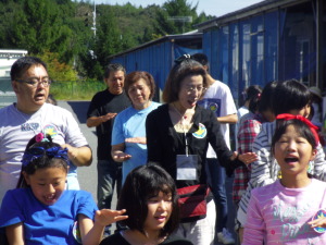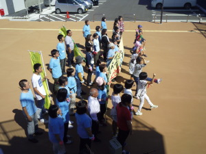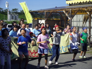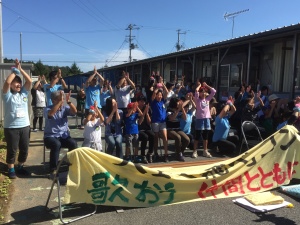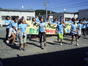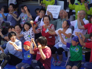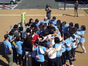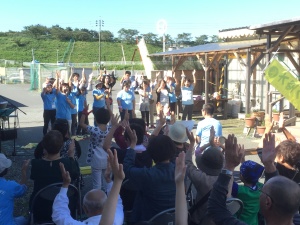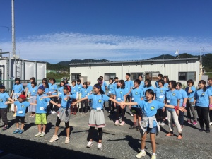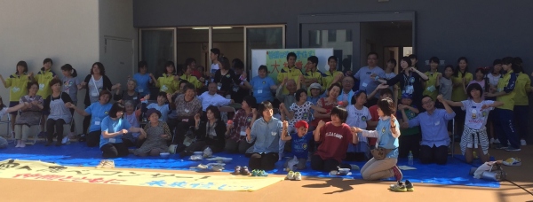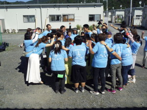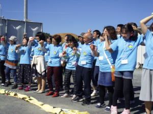 フィナーレは、東北復興ソング「♪花は咲く」、みんなで大きな一つの輪になって「♪笑顔がかさなれば」を歌い上げました。