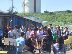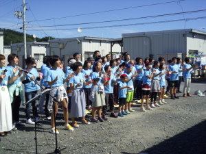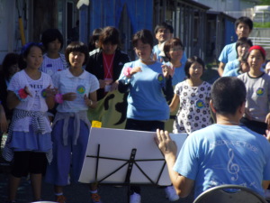 2日目は、東松島市やもとひまわり仮設住宅を訪れ、コンサートを行いました。