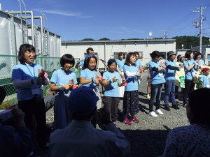そんな思いをもって、東北復興ソング「♪花は咲く」を地元のみなさんと一緒に歌いました。