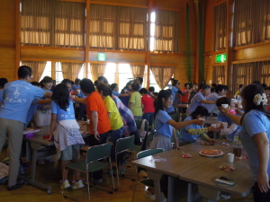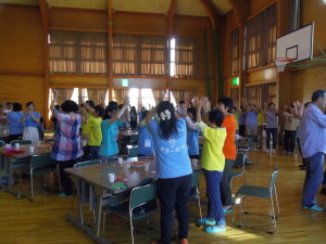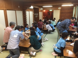その夜は、でんえん土田畑(どたばた)村の宿舎で、地元の先生方や高校生3人と交流をしました。