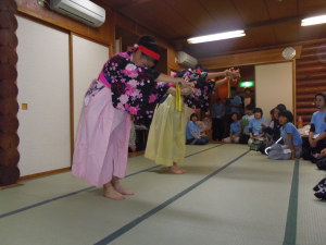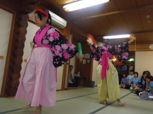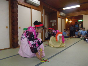 メンバーの前で「御神楽」を披露してくれました。見事な舞に拍手喝采です。