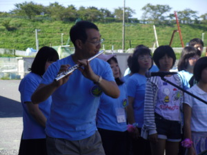 瀬成田先生が勤務する向洋中学校のボランティアの生徒さんも交えてコンサートを行いました。