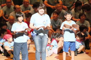 「花は咲く」の手話をわかりやすくおねえさんが教えてくれました。歌は、気持ちを込めて歌っていたのがわかりました。ホタルは、ドラマのような演技でした!(高岡市) |