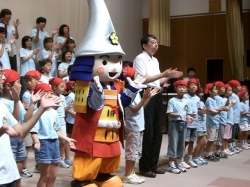 橘市長さんとマスコットの利長くんも飛び入り参加です。