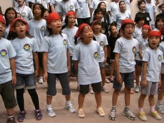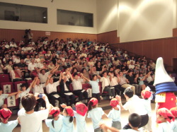 和太鼓の演奏も加わって、会場を埋め尽くす観客とともに熱唱しました!