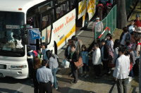 メンバー115名、バス2台でいざ山古志村へ出発です!