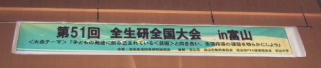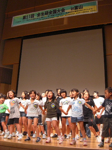 開会セレモニーで「僕らのために学校があるはず…」と元気に歌う子どもたちの姿に希望をもちました。この富山大会が、新しい50年のスタートになるように期待しています。 |