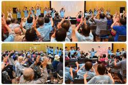 10日には大音楽会が開かれ、群馬県の教職員らが朗読と合唱で「焔(ほのお)の記憶~太陽の旗」を上演し、全国の演奏者合同による合唱構成劇「ぞうれっしゃがやってきた」が演奏されました。「大空へ飛べ」で全曲歌ったのは1999年以来でした。 |